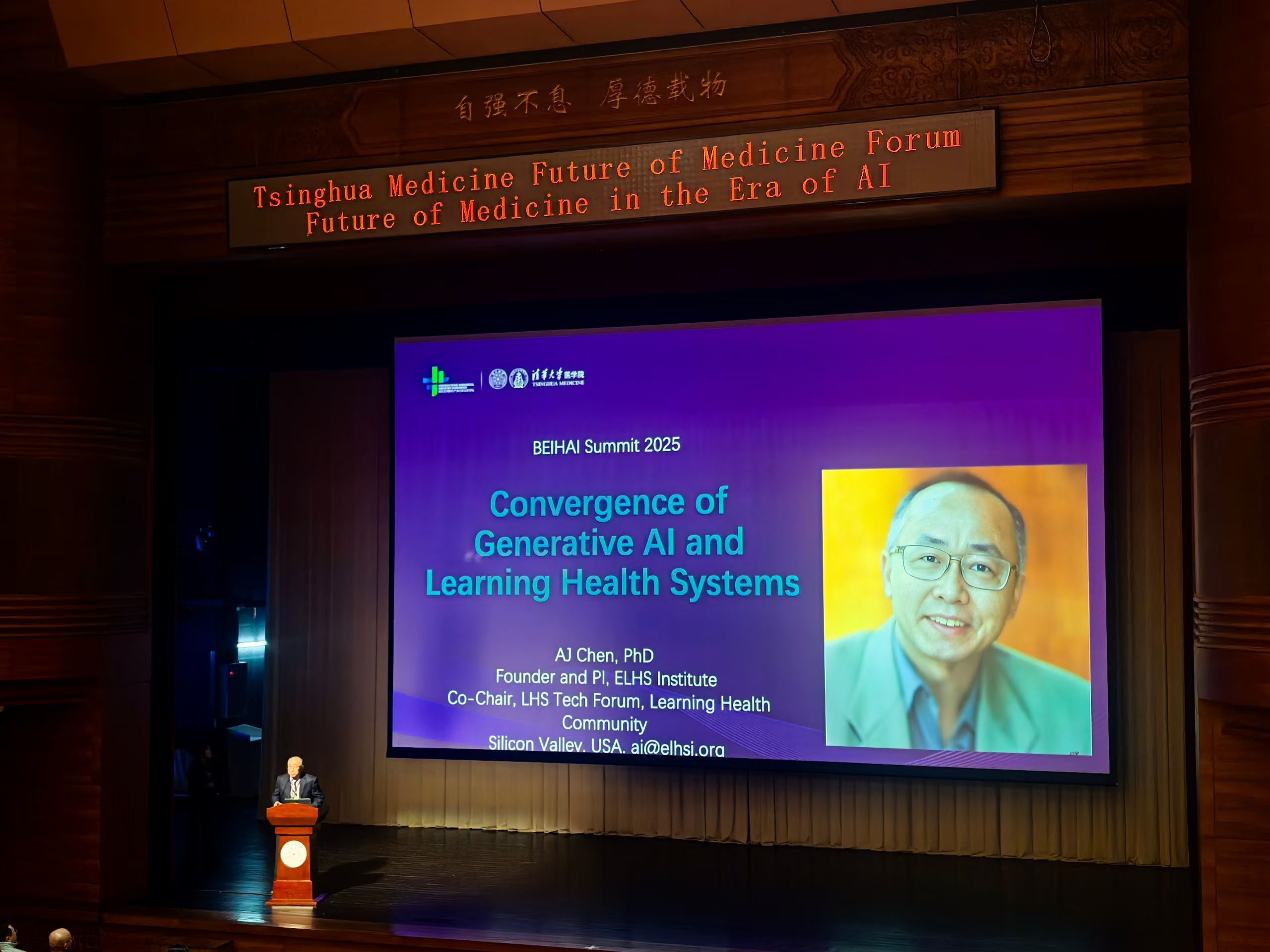 ELHS Institute founder Dr. AJ Chen was invited to deliver a keynote at the Tsinghua Heath AI Summit. Given the unprecedented predictive capabilities of generative AI (GenAI) based on large language models (LLMs), a critical question arises: how can GenAI be applied to improve clinical diagnosis across all diseases and populations, thereby reducing global health disparities at scale? The answer may lie in the convergence of GenAI and Learning Health Systems (LHS).